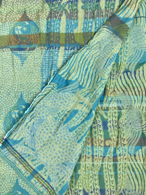 Kashmir / Woven Paisley Shiny Silk Scarf / Turquoise Paisley