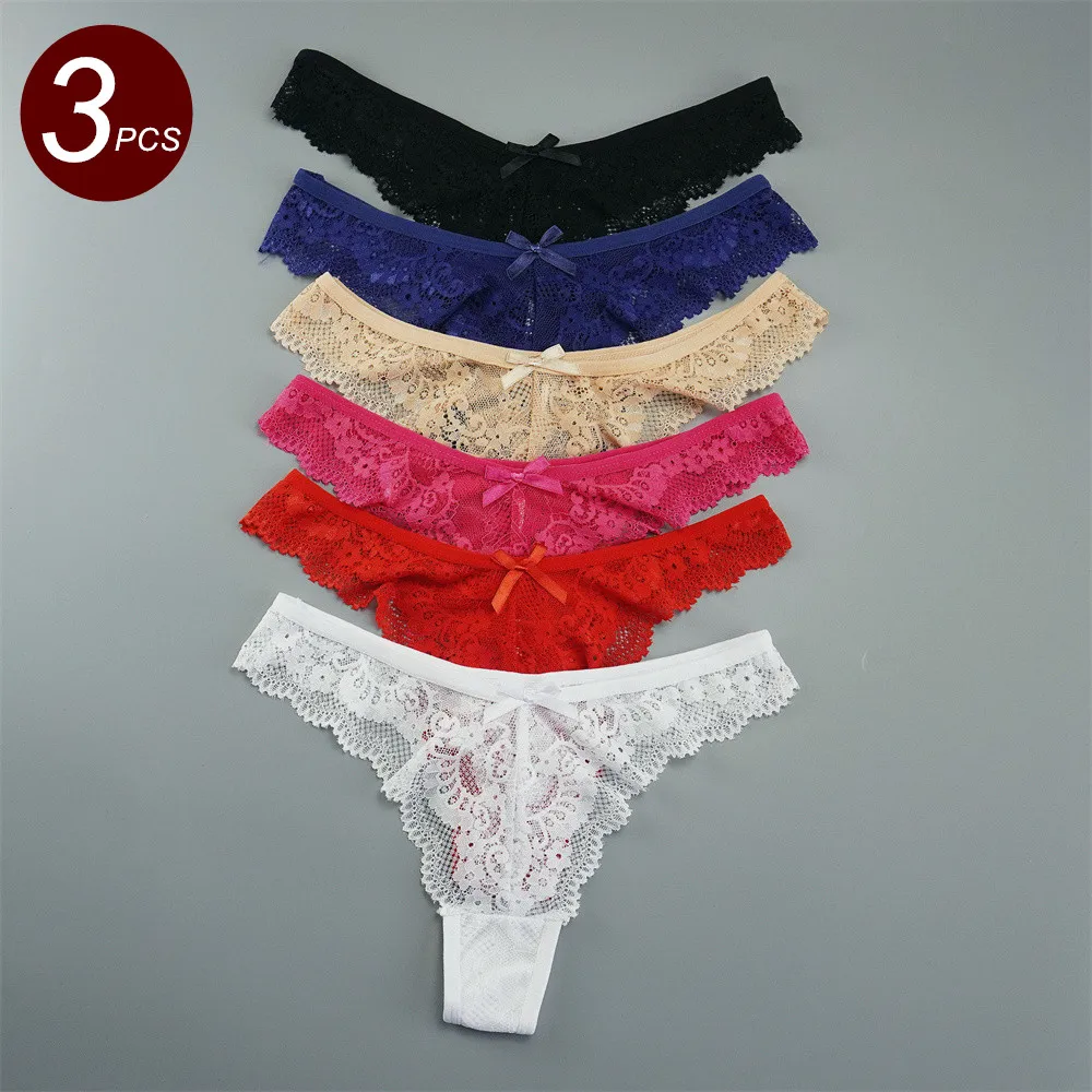 3-Piece Lace Women G String Thong Plus Size Low Waist Panties