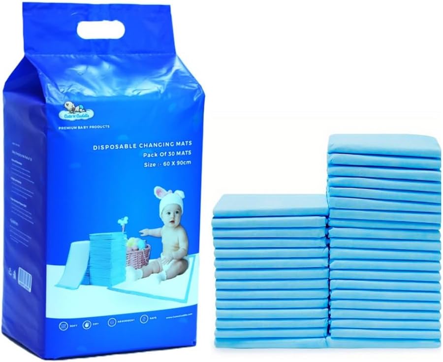 Cute ‘n’ Cuddle Disposable Changing Mats 60cm x 90cm (30 Pack, Blue)