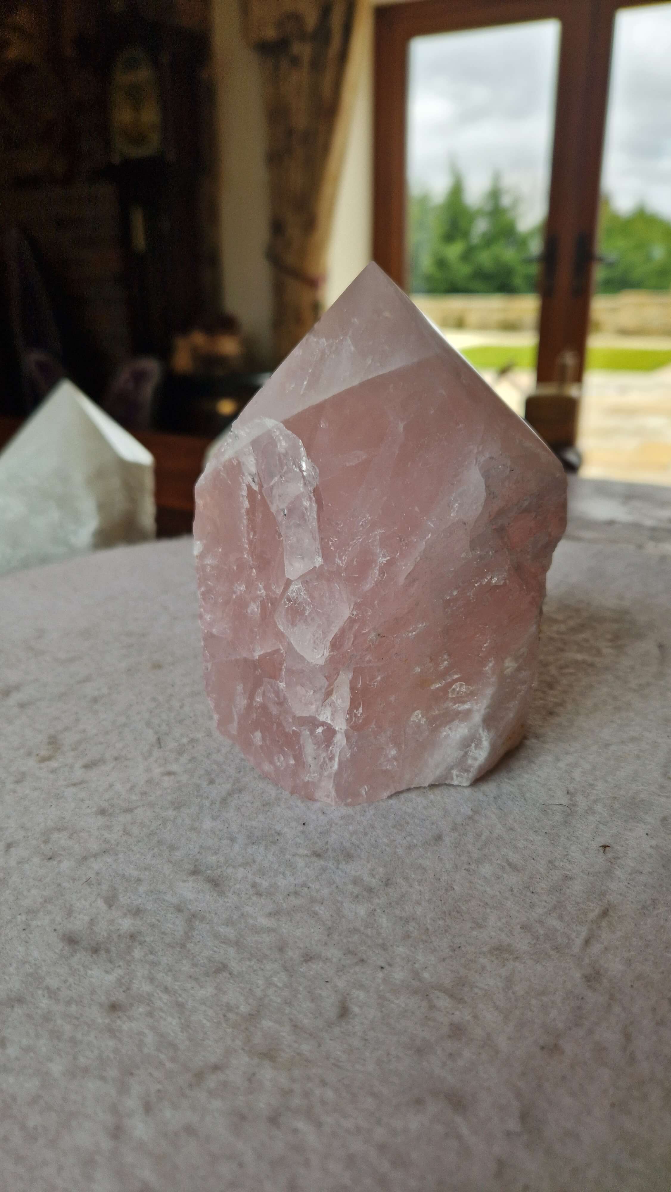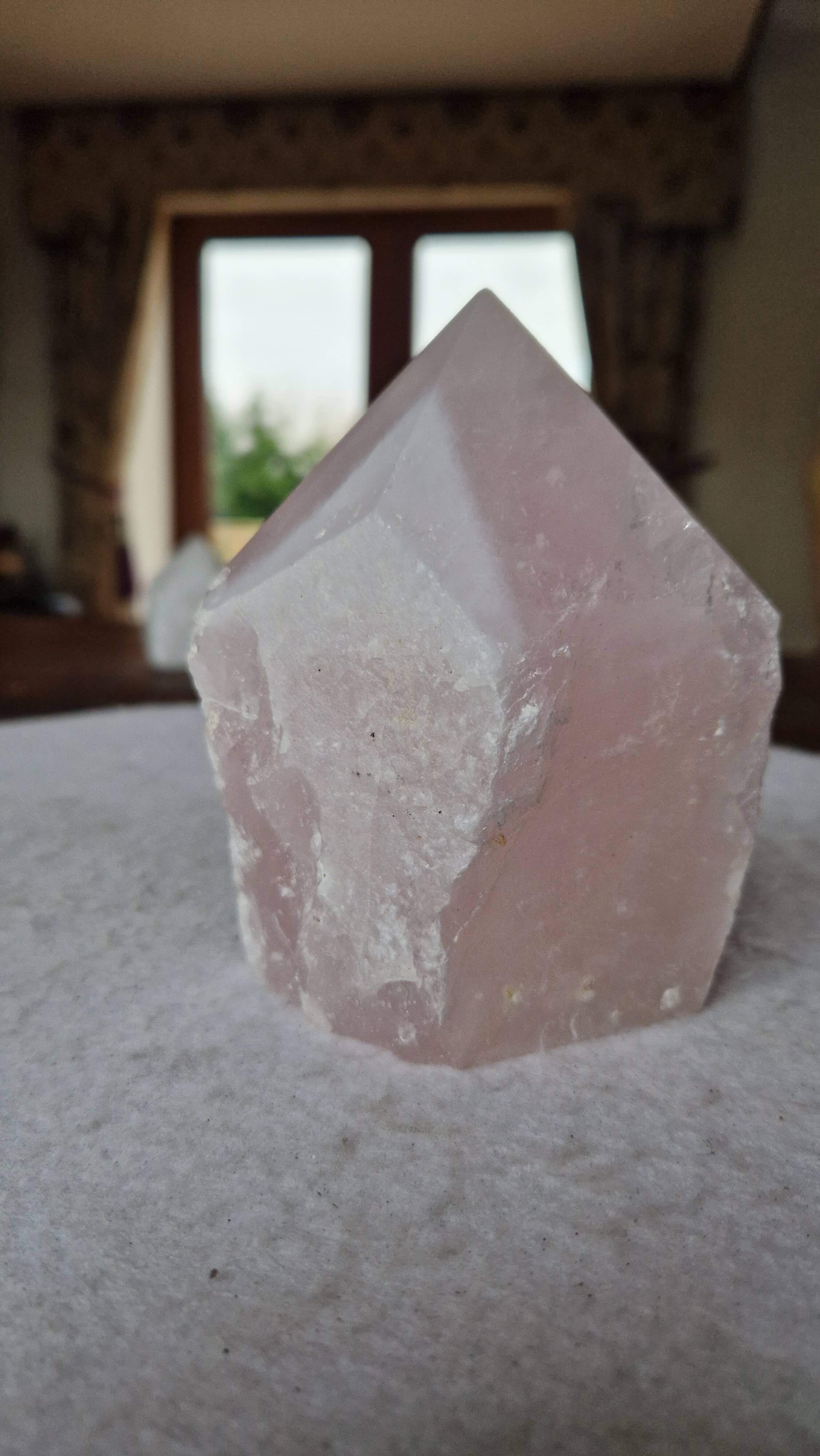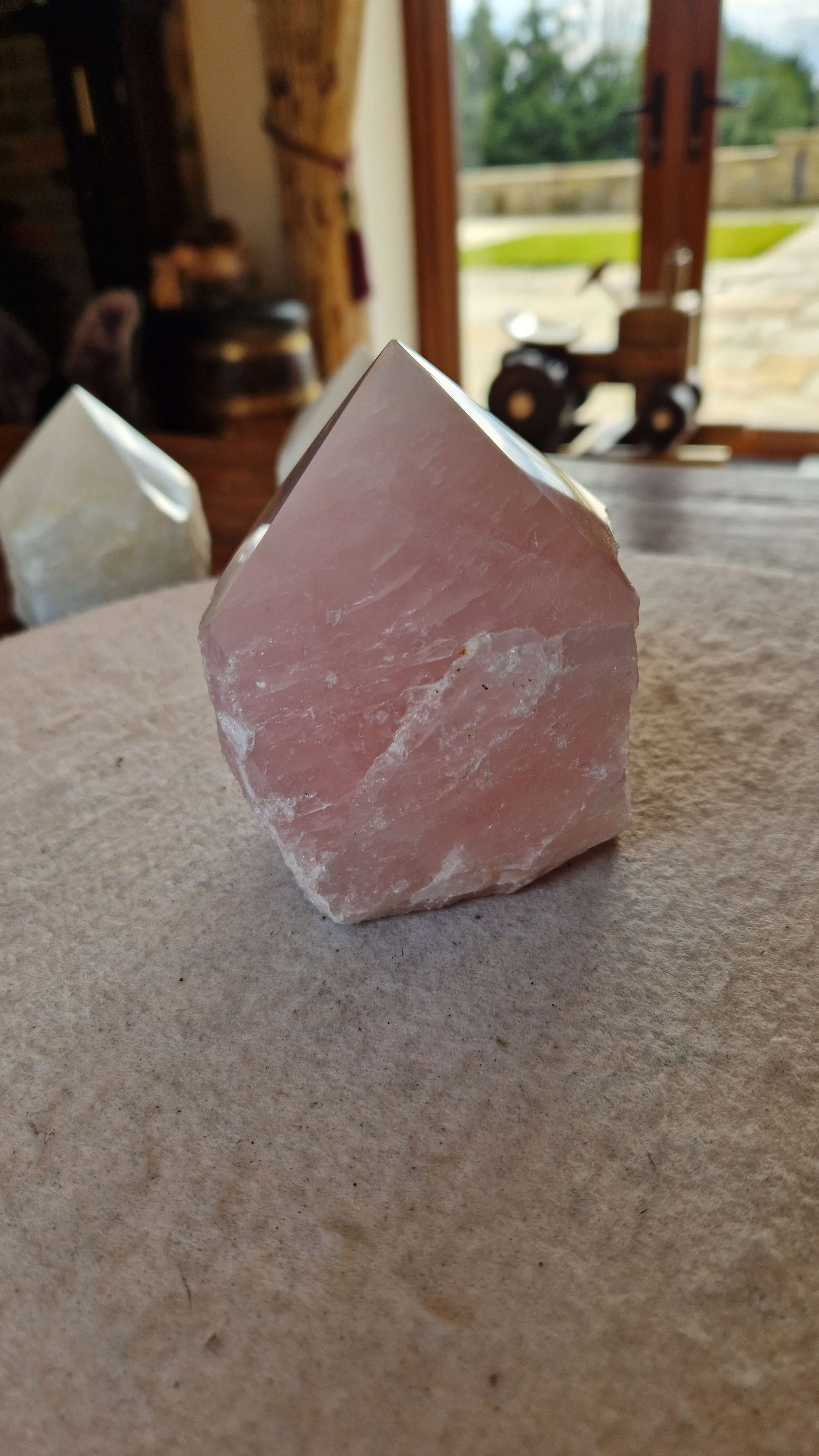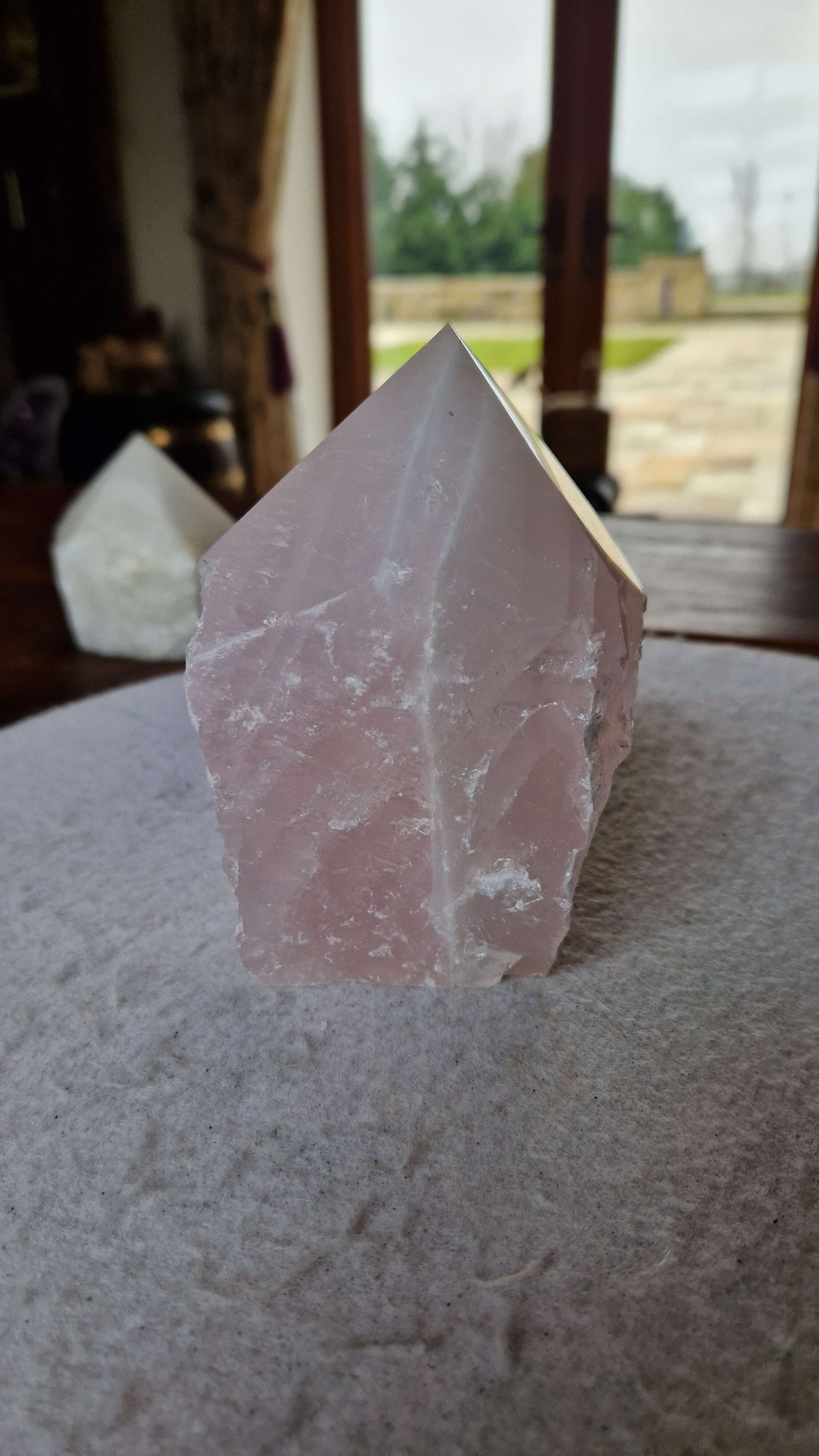 Large Rose Quartz Pink Crystal 1 Quartz Tower Points Polished Tip Gemstones Natural 859g H10.5xW9.5xD8cm