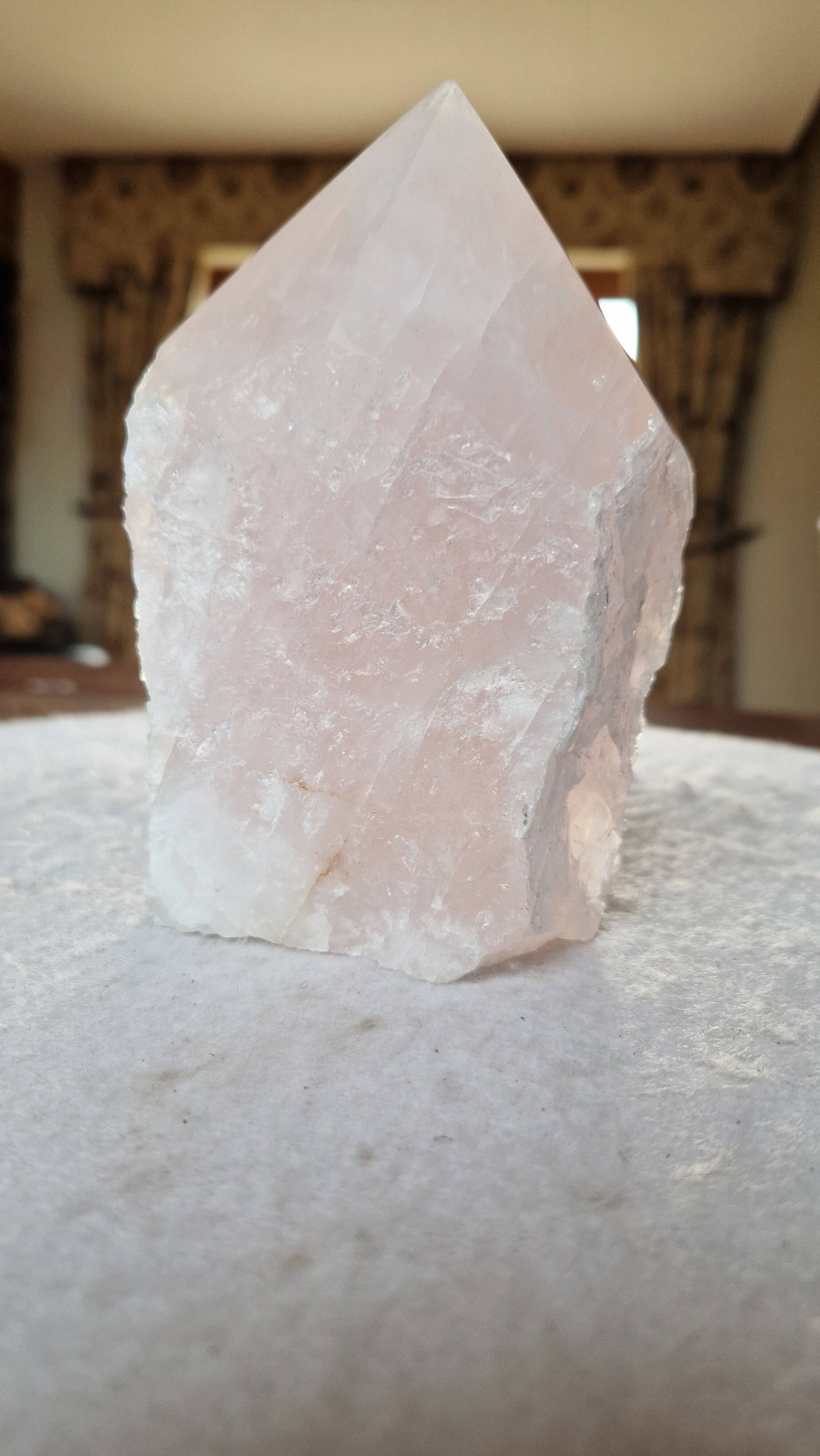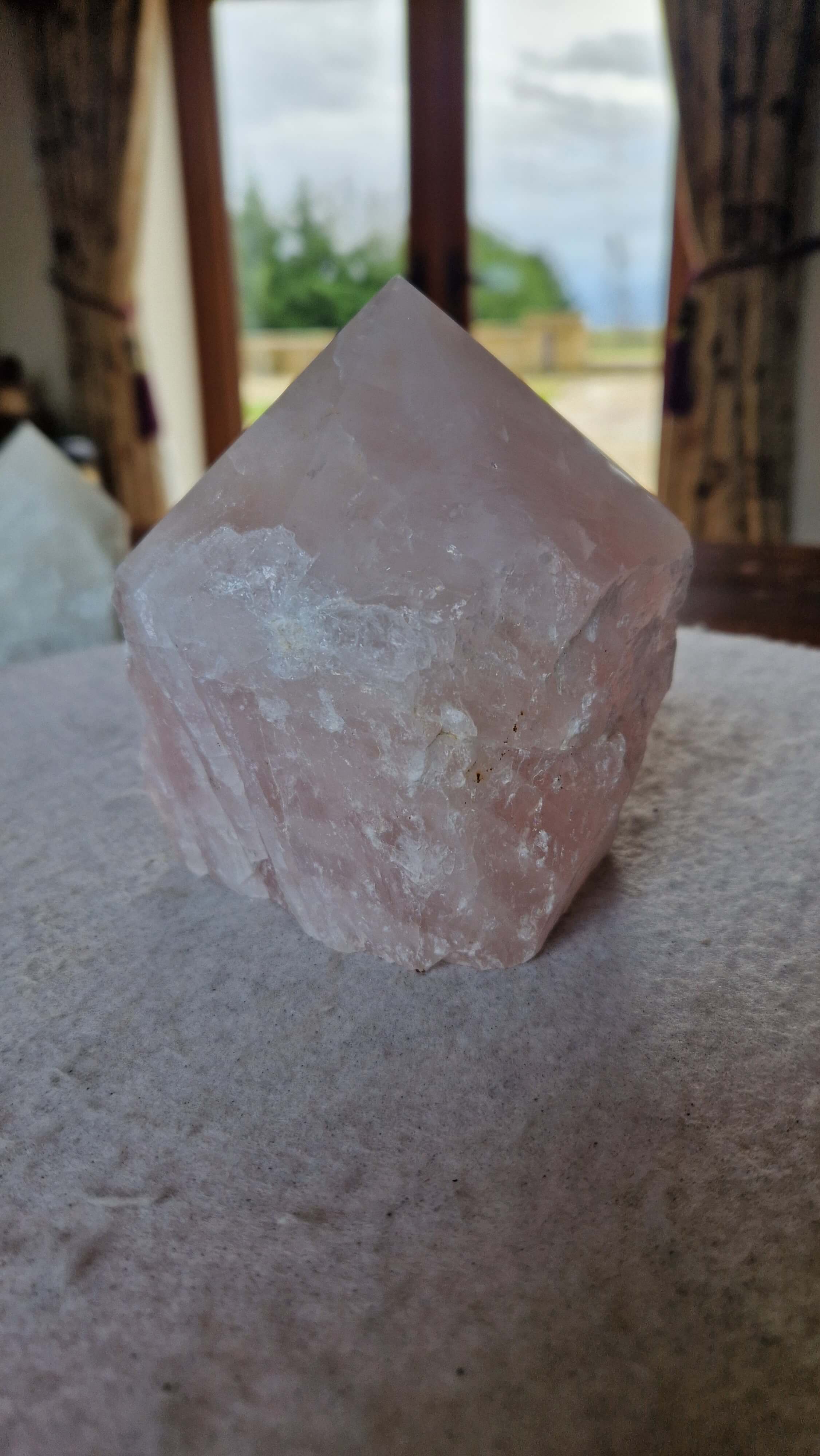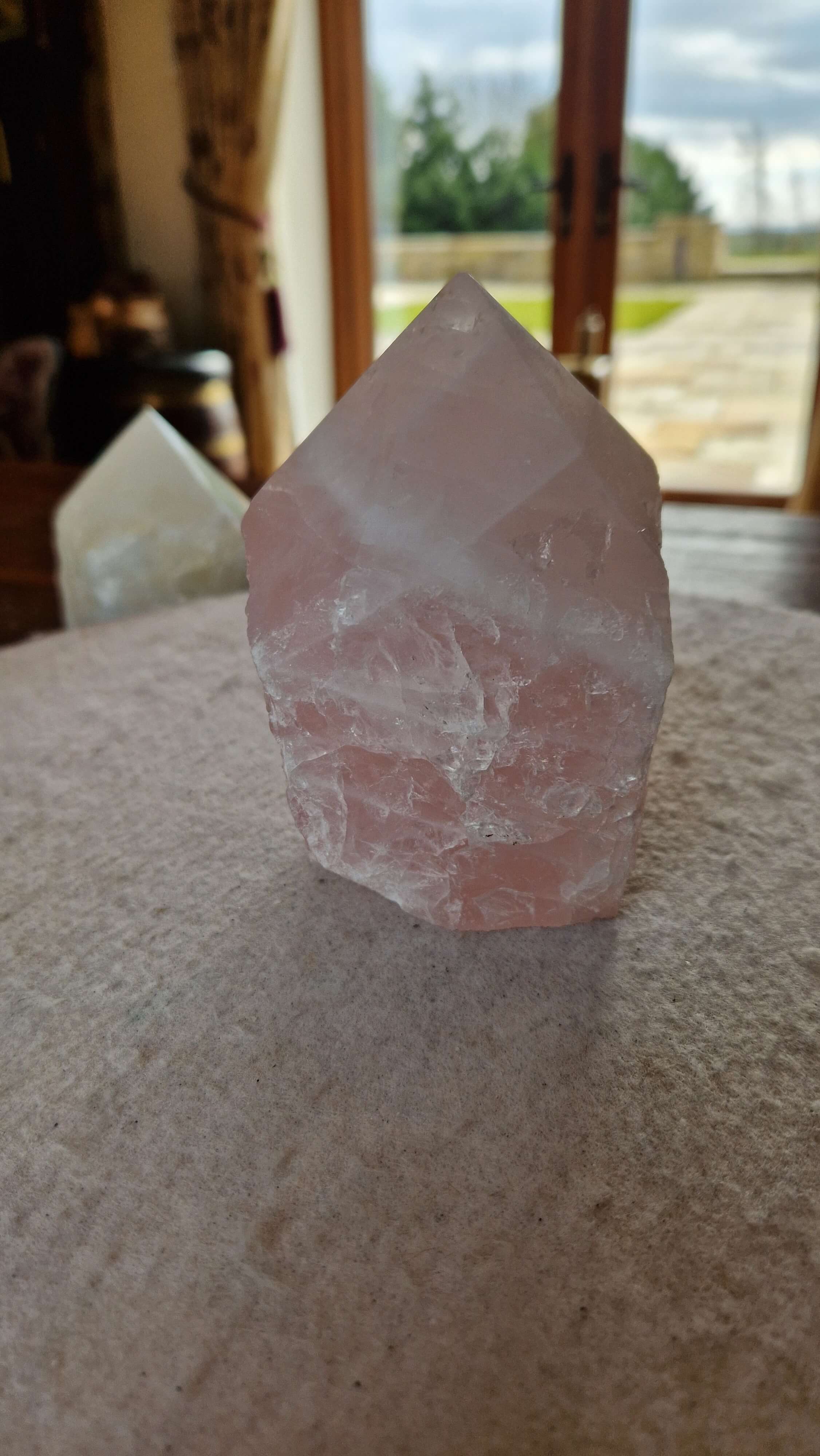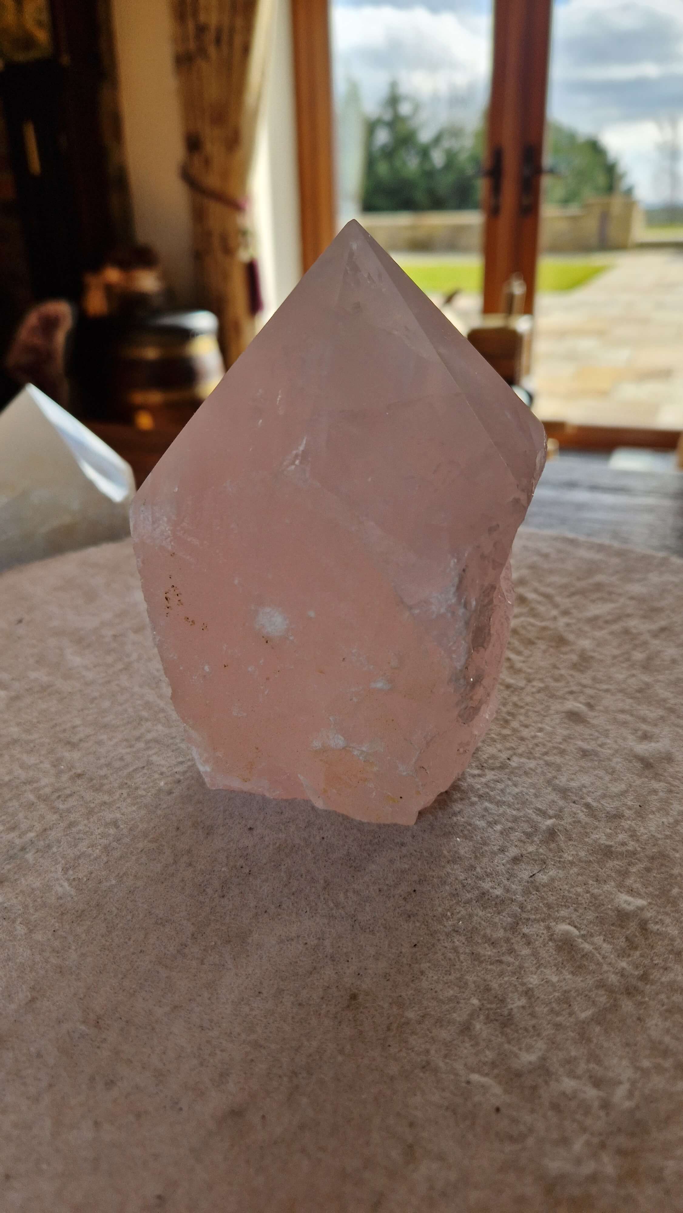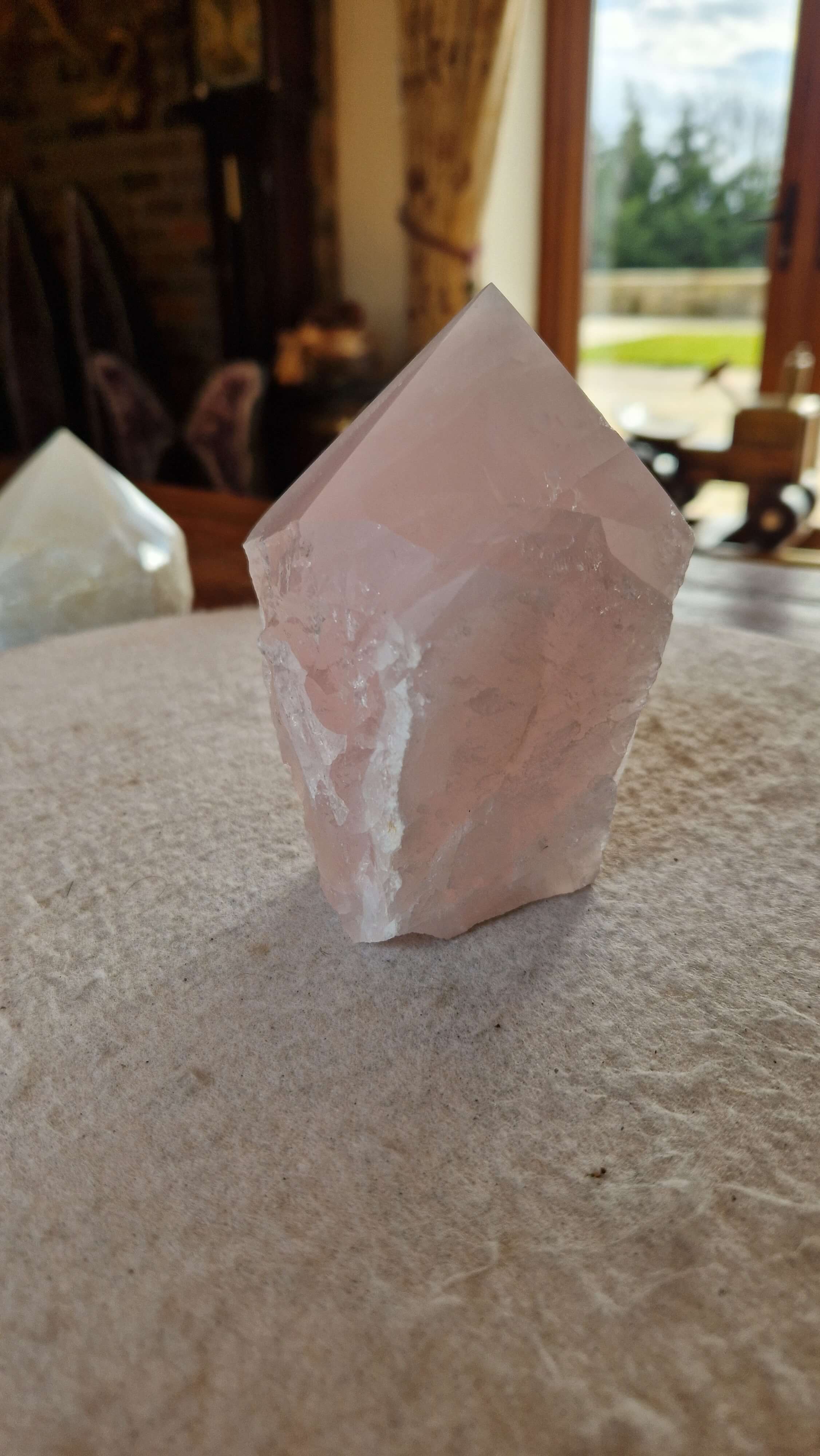 Large Rose Quartz Pink Crystal 1 Quartz Tower Points Polished Tip Gemstones Natural 859g H10.5xW9.5xD8cm