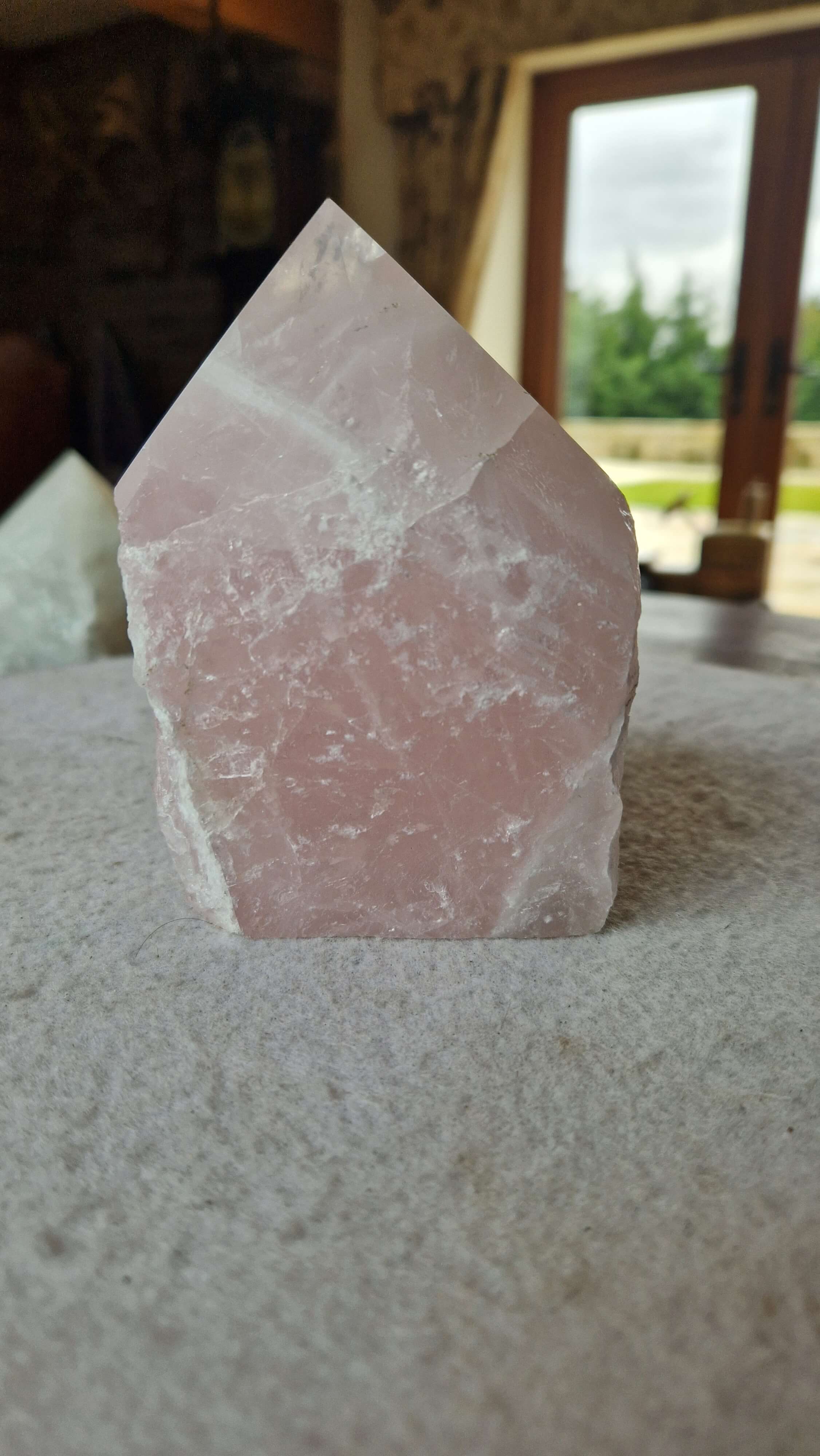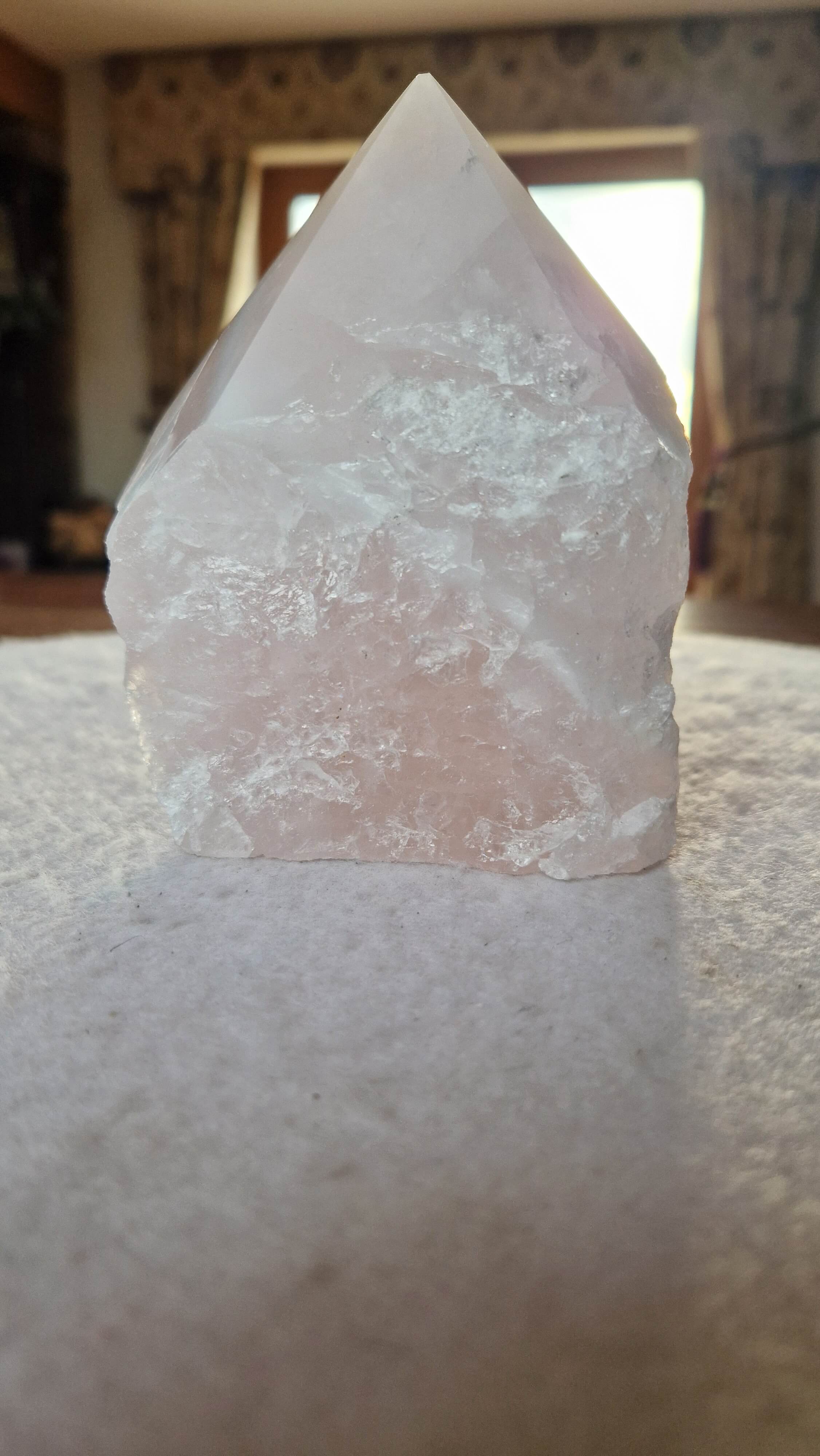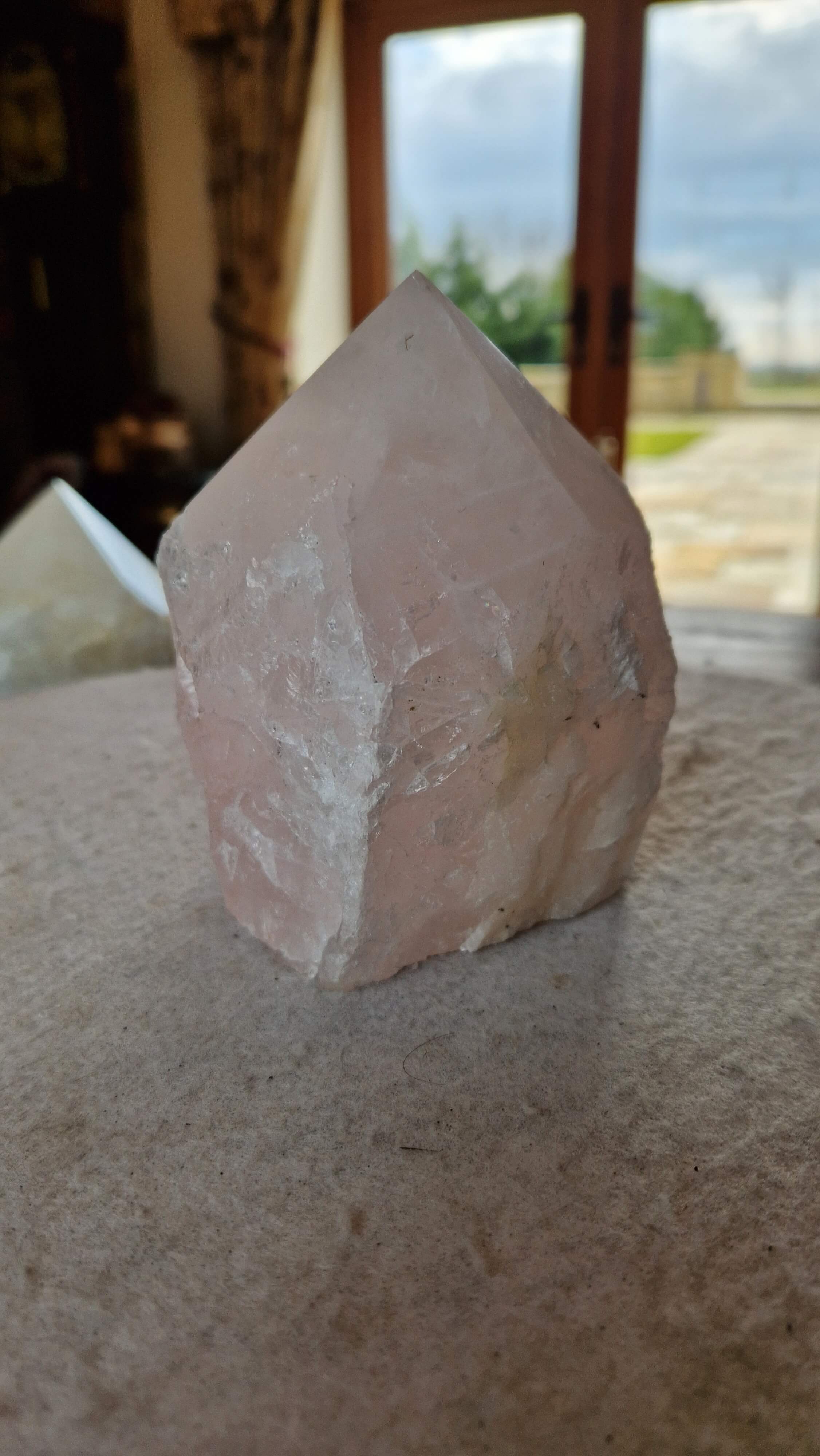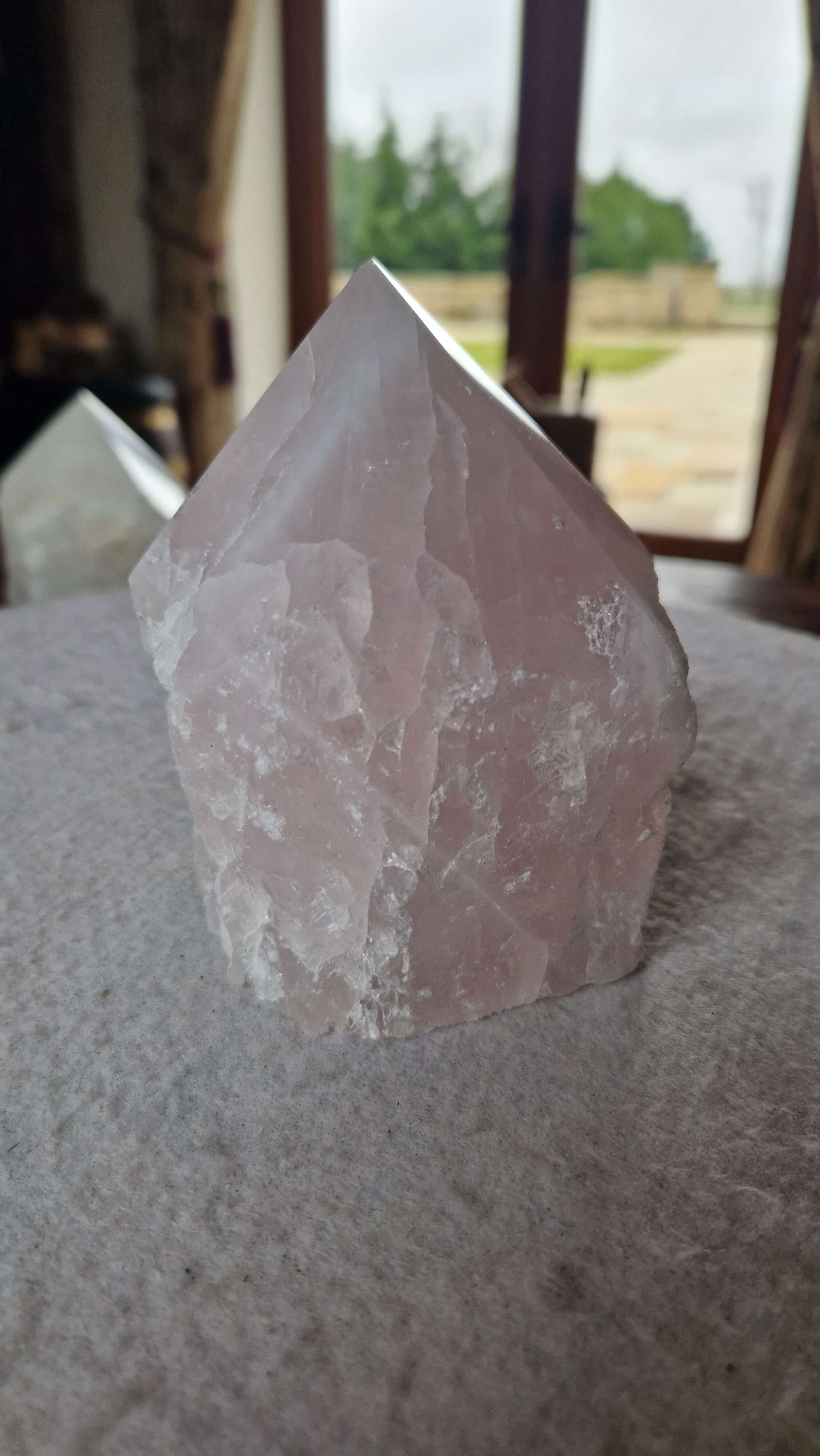 Large Rose Quartz Pink Crystal 1 Quartz Tower Points Polished Tip Gemstones Natural 859g H10.5xW9.5xD8cm