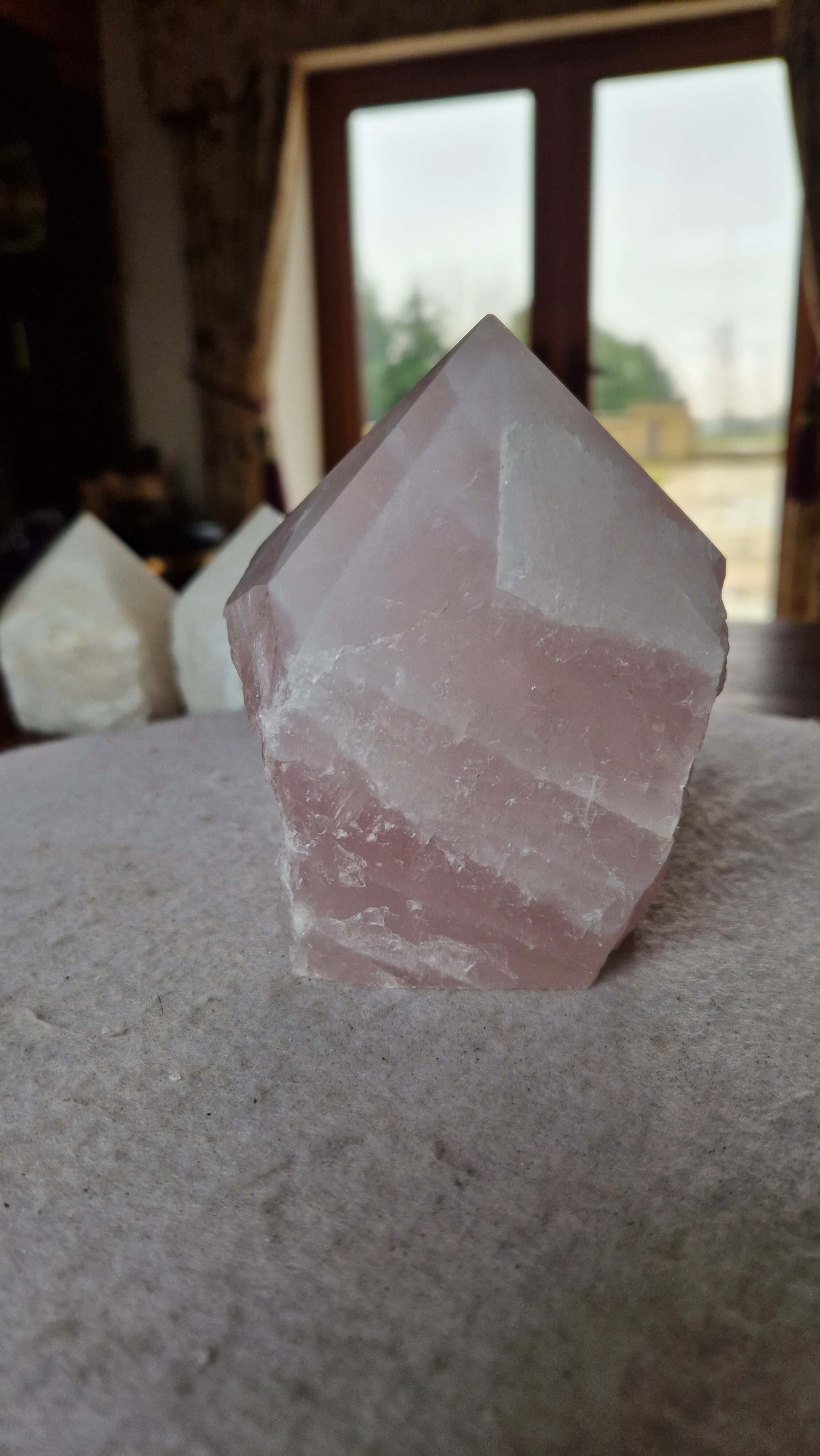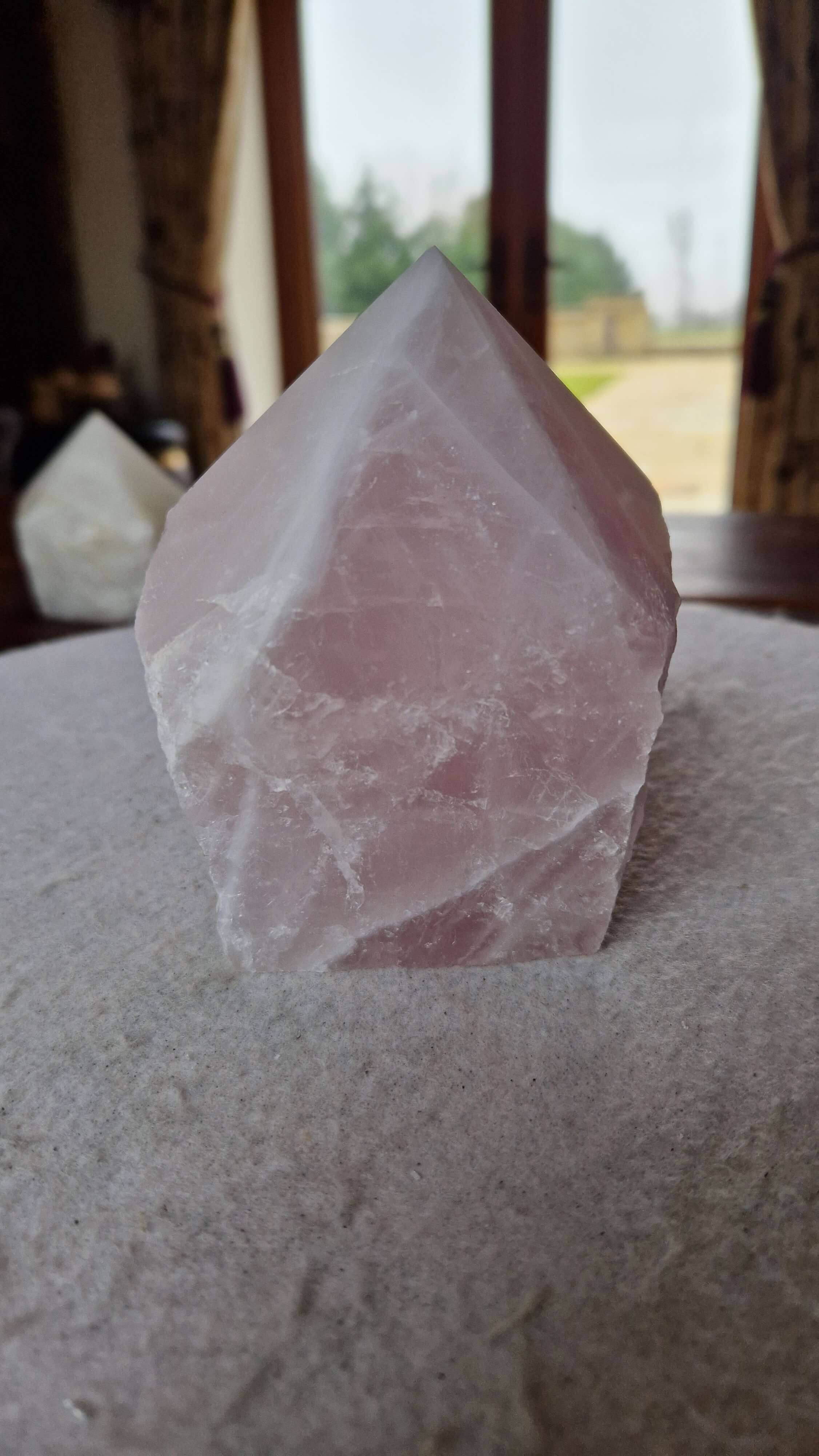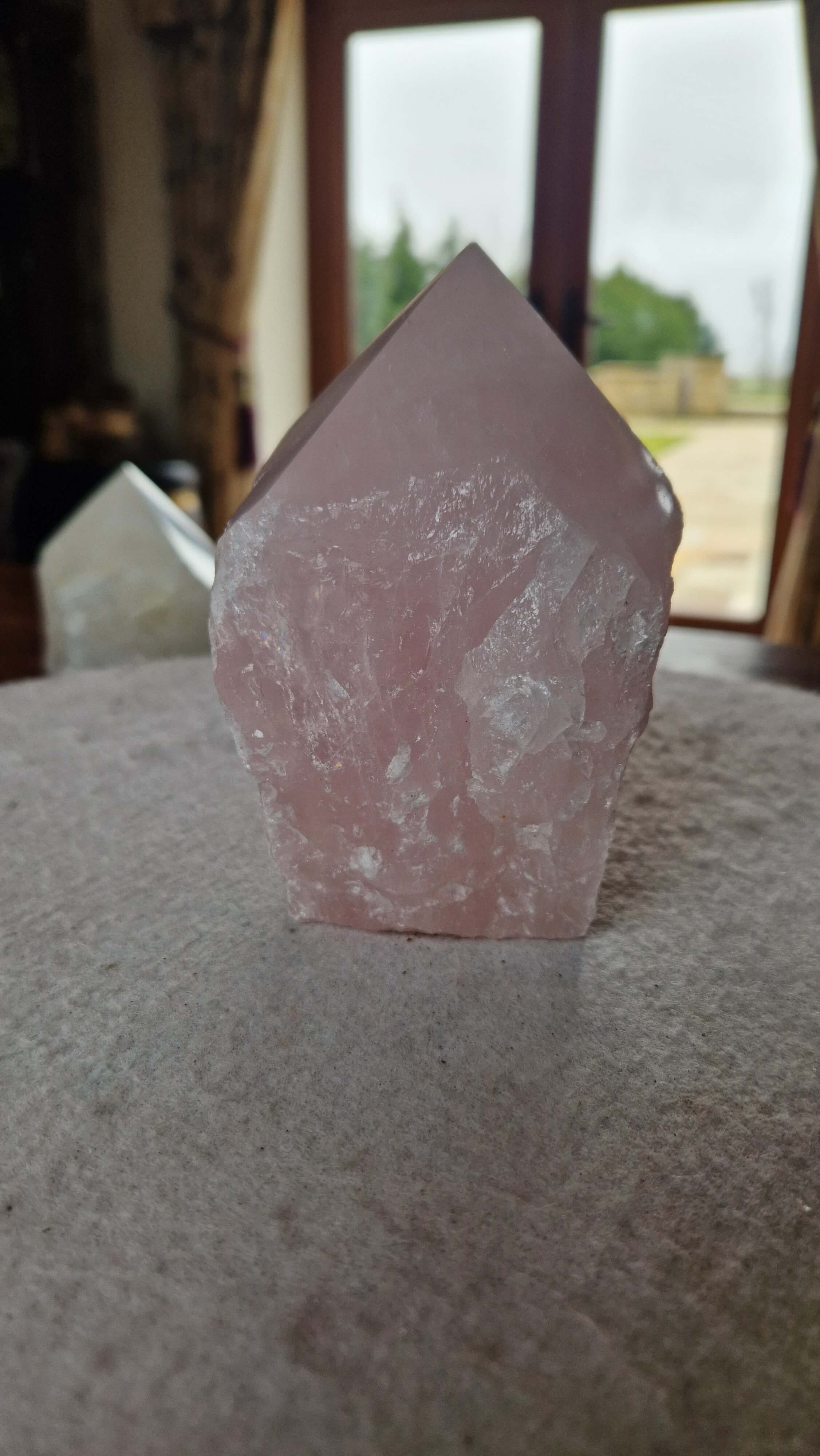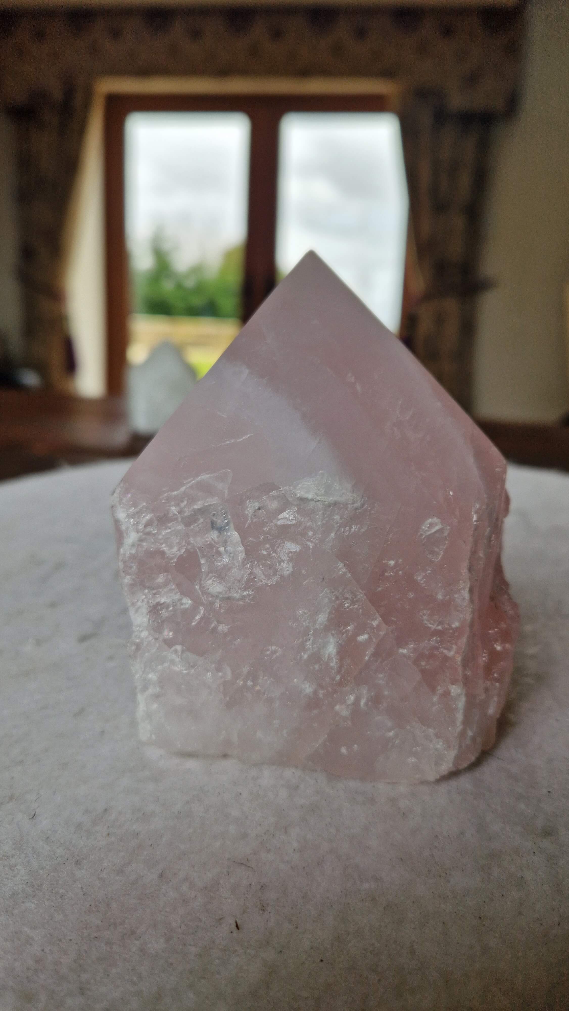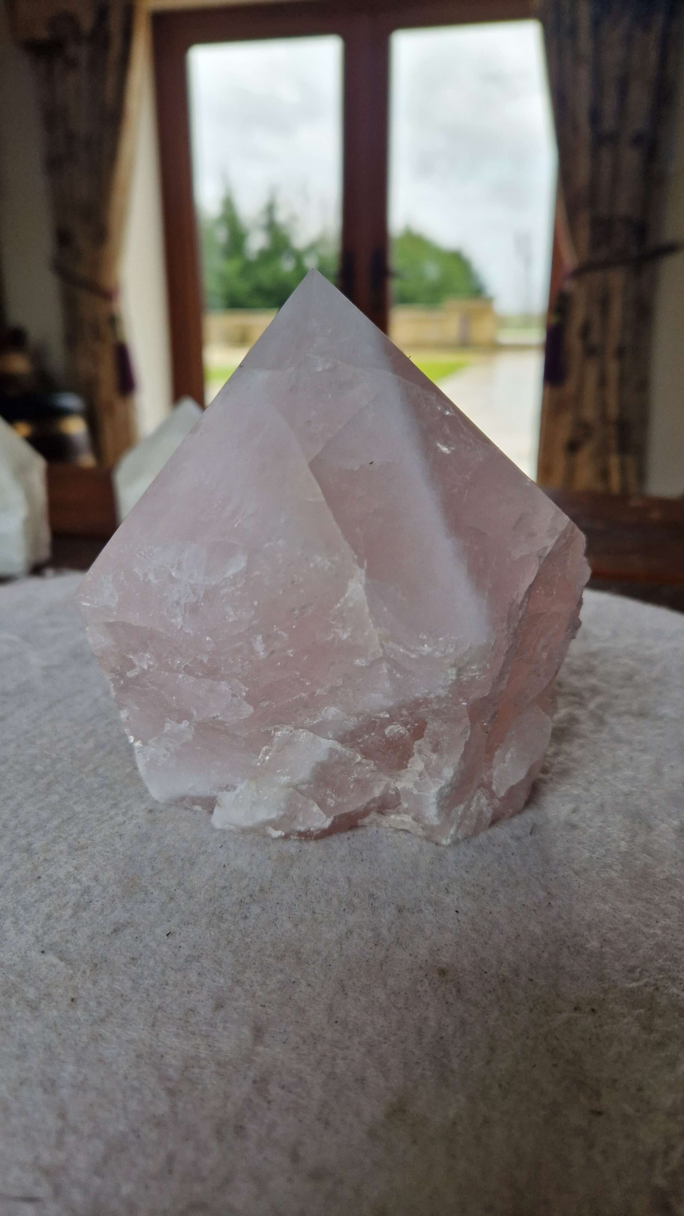 Large Rose Quartz Pink Crystal 1 Quartz Tower Points Polished Tip Gemstones Natural 859g H10.5xW9.5xD8cm