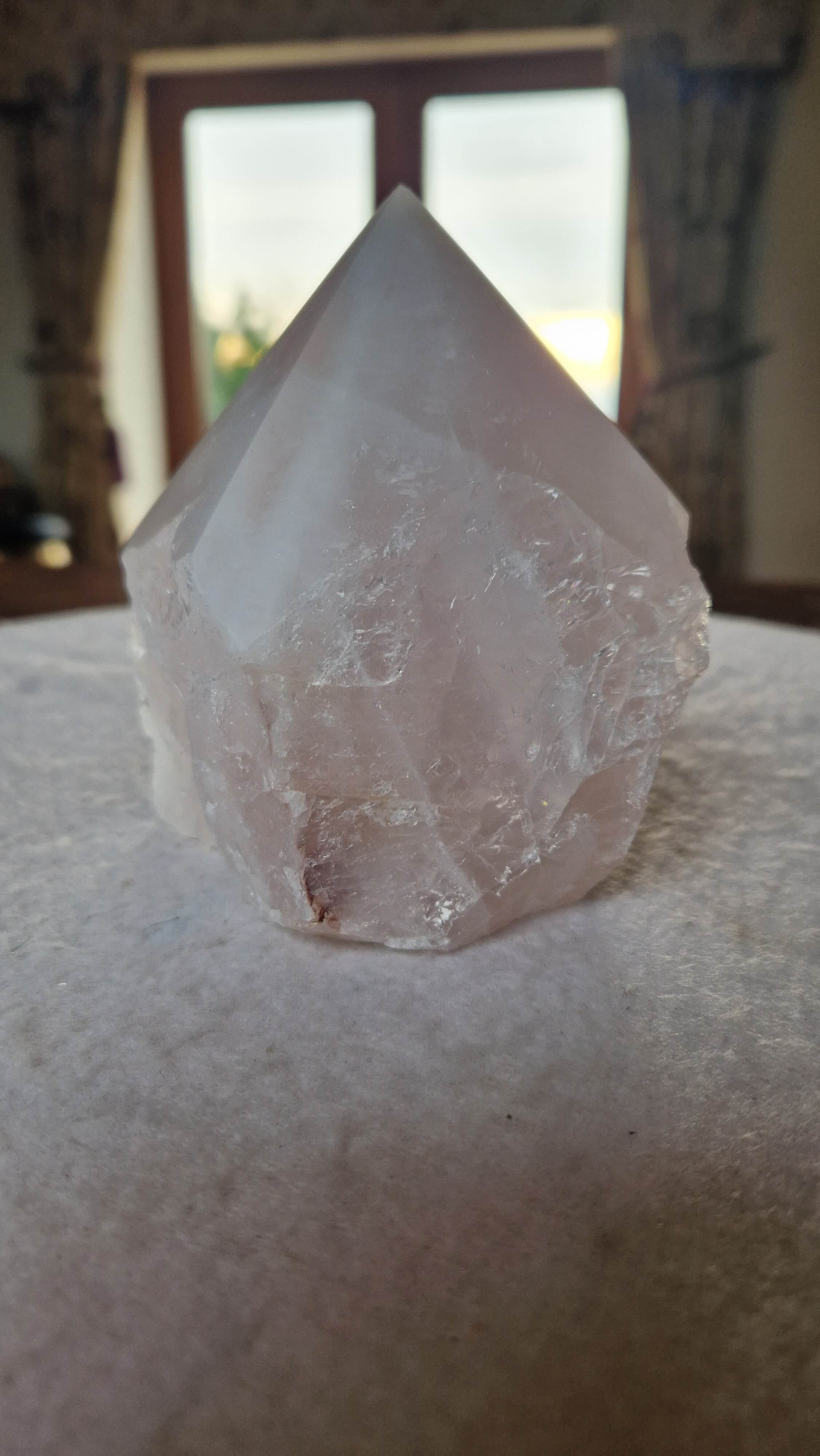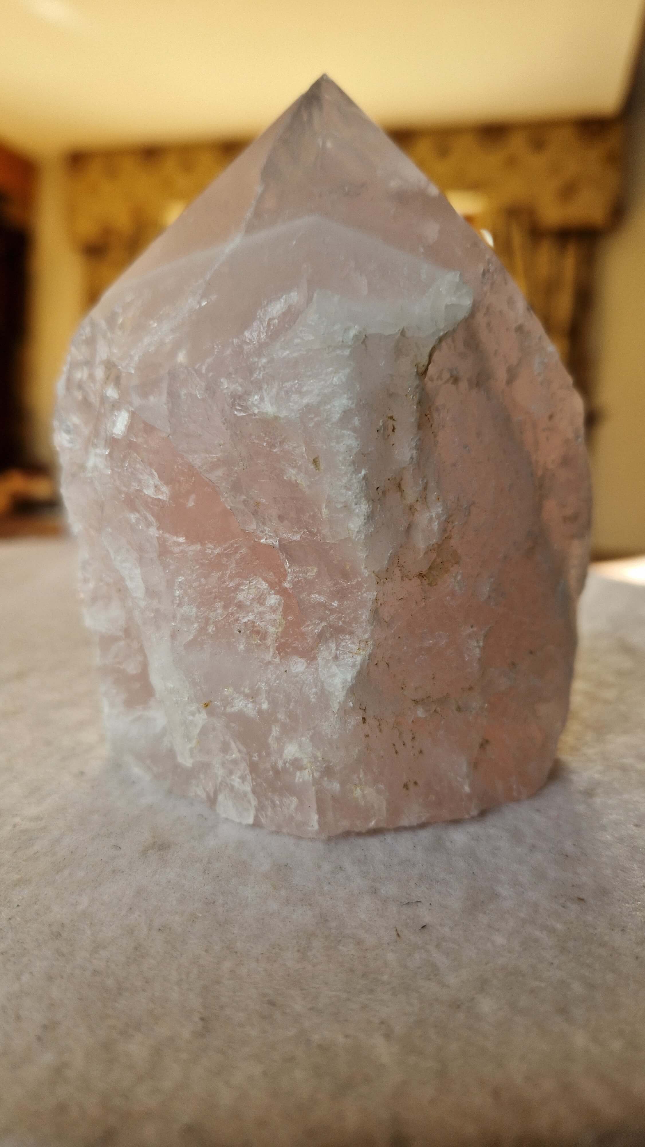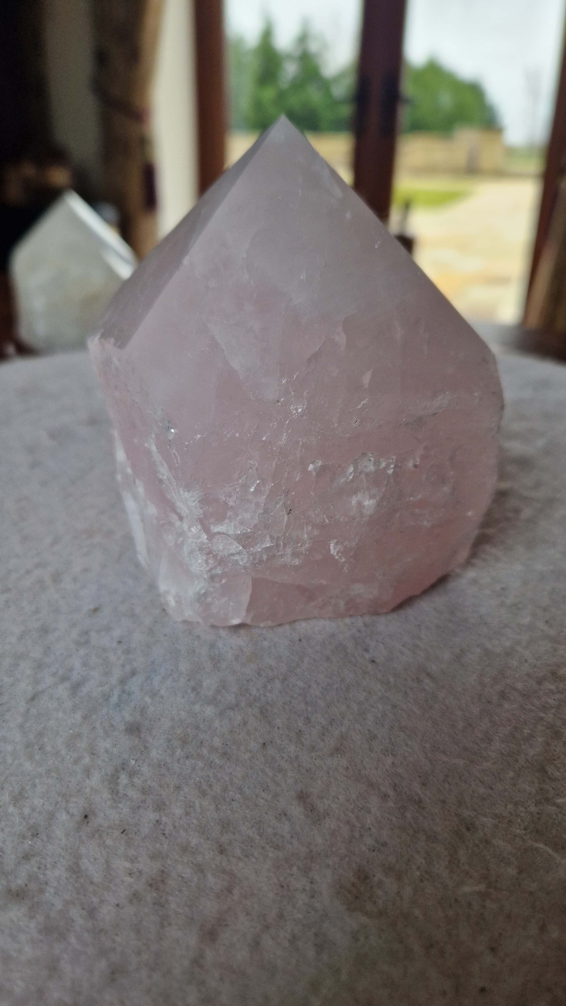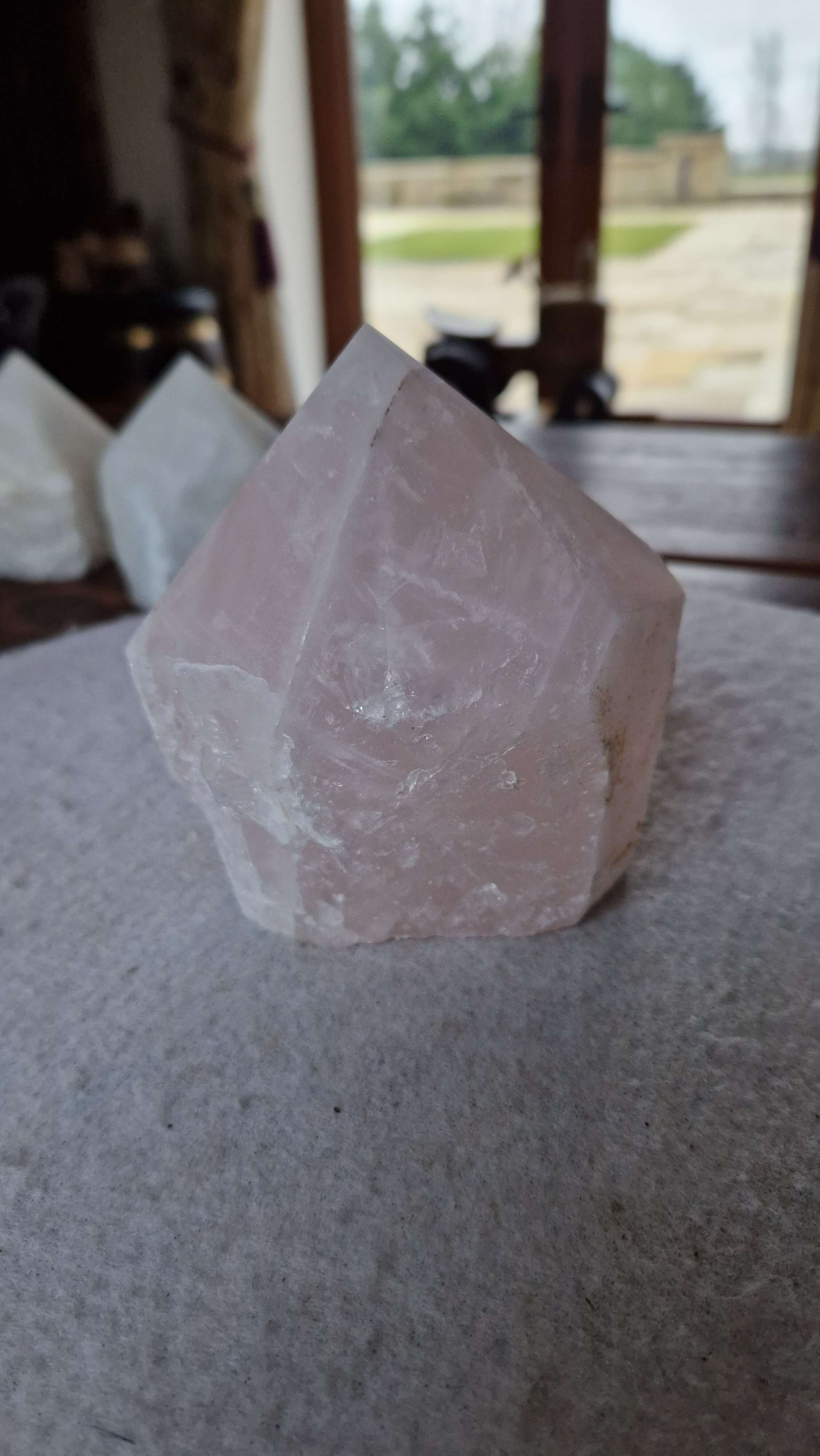 Large Rose Quartz Pink Crystal 1 Quartz Tower Points Polished Tip Gemstones Natural 859g H10.5xW9.5xD8cm