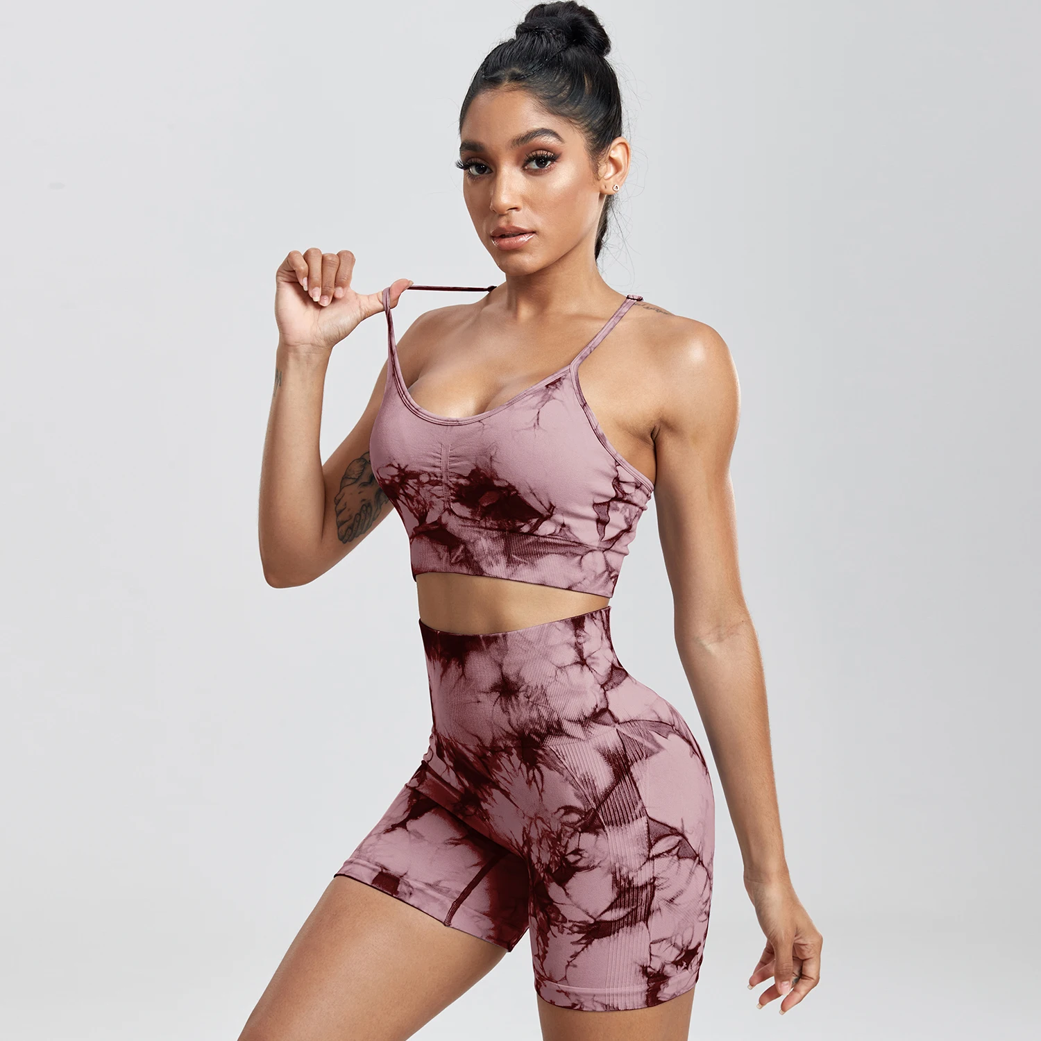 Two-piece Tie Dye Seamless High Waist Shorts Sets