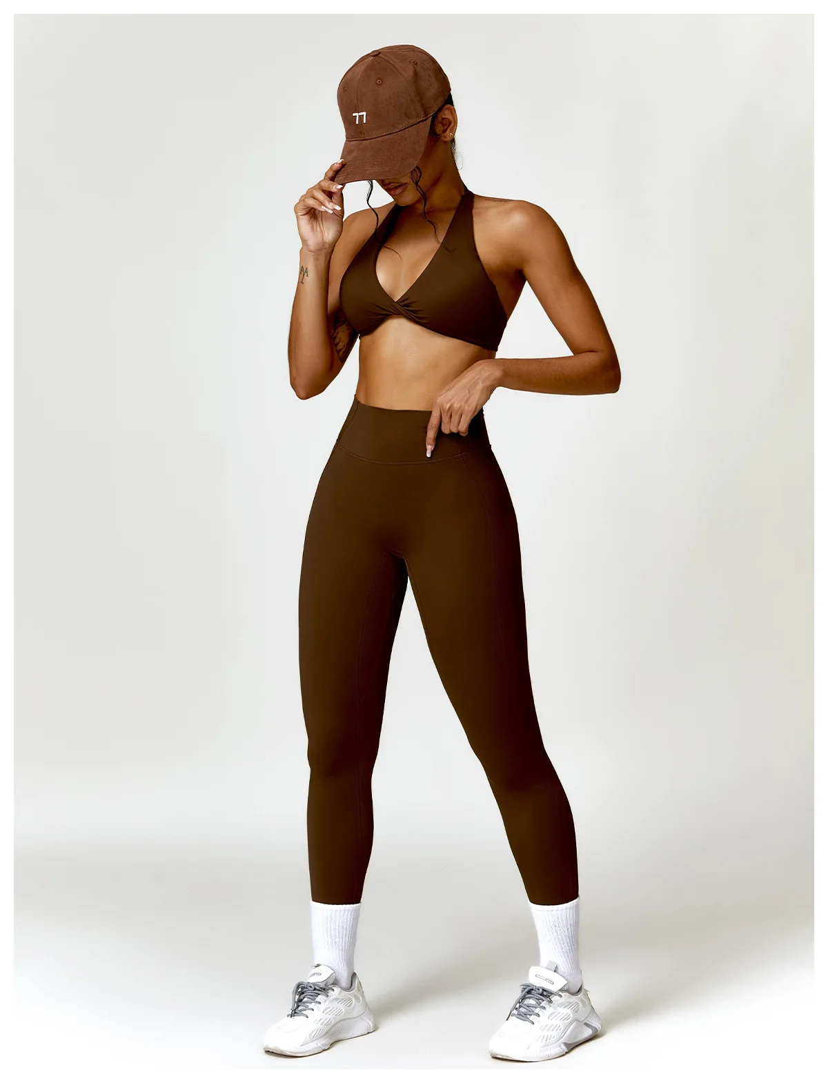 2-Piece Nude Feeling Push-Up Sport Bra Leggings Yoga Set