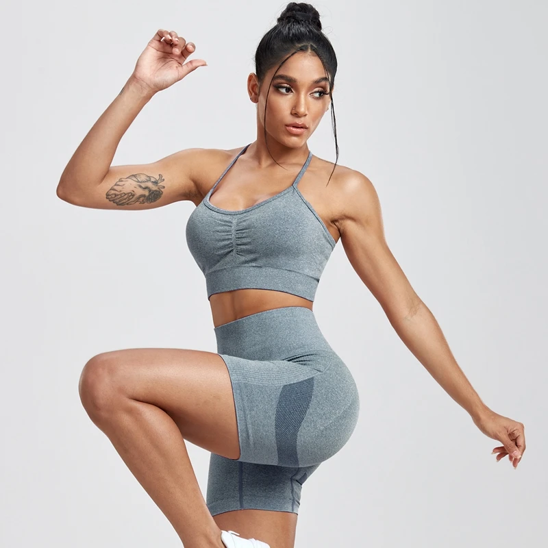 Top Brand 2-Piece Seamless Solid Color Push-Up Bra Shorts Yoga Set