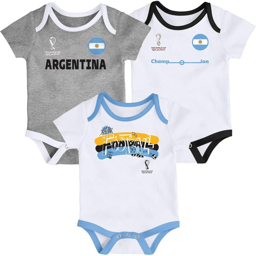 Outerstuff International Soccer Unisex Kids Fifa World Cup 3 Piece Onesie Set(Blue-white-white)
