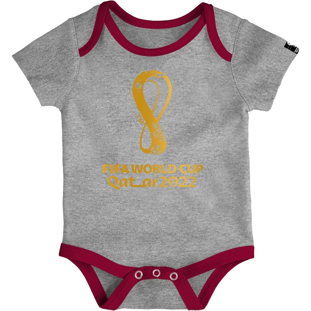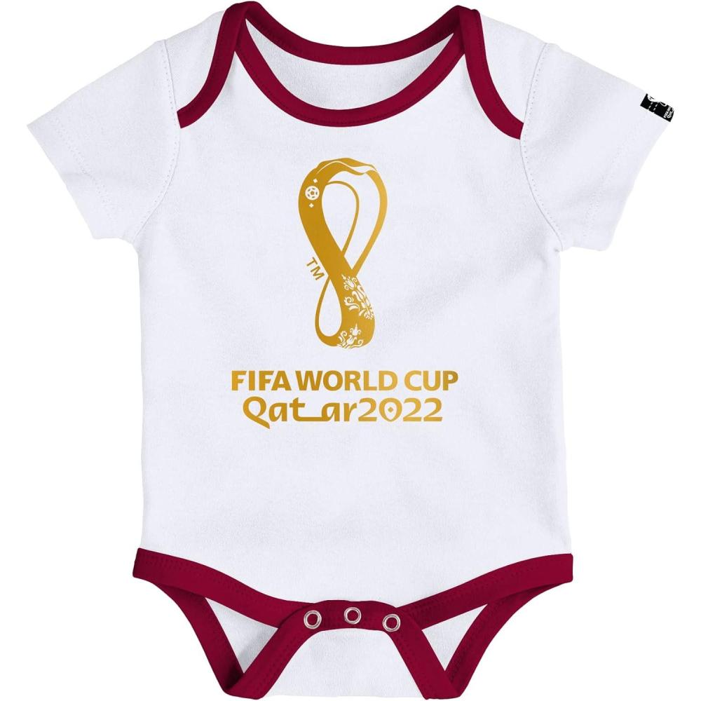 Outerstuff International Soccer Unisex Kids Fifa World Cup 3 Piece Onesie Set(Burgundy)